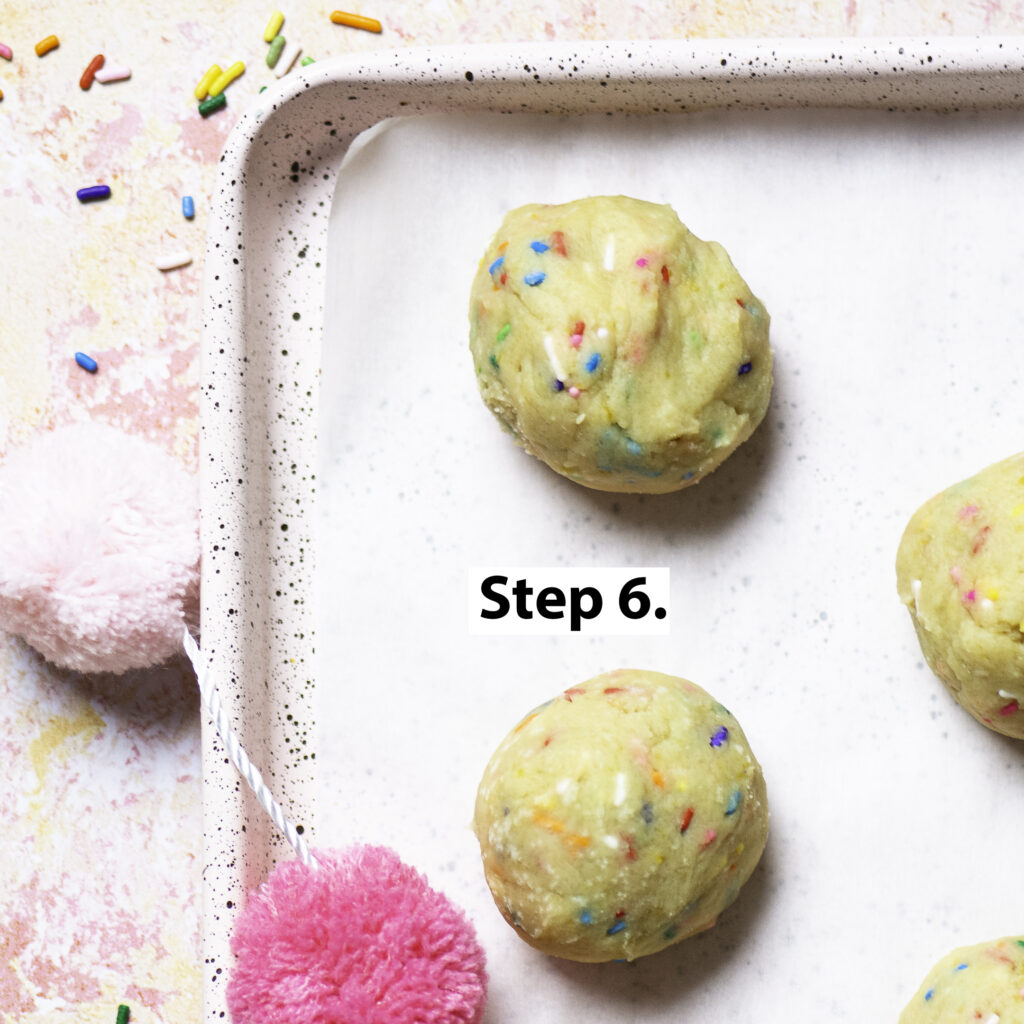 Step 6. Scoop the cookies on to a light-colored baking tray lined with parchment paper. Be sure to leave at least 2 inches of space between each ball of dough to allow space for it to spread during baking.