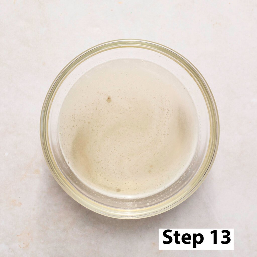 Step 12. Add the cold water to a small microwave-safe bowl then sprinkle the gelatin on top. Allow the gelatin to bloom for 5 minutes.
