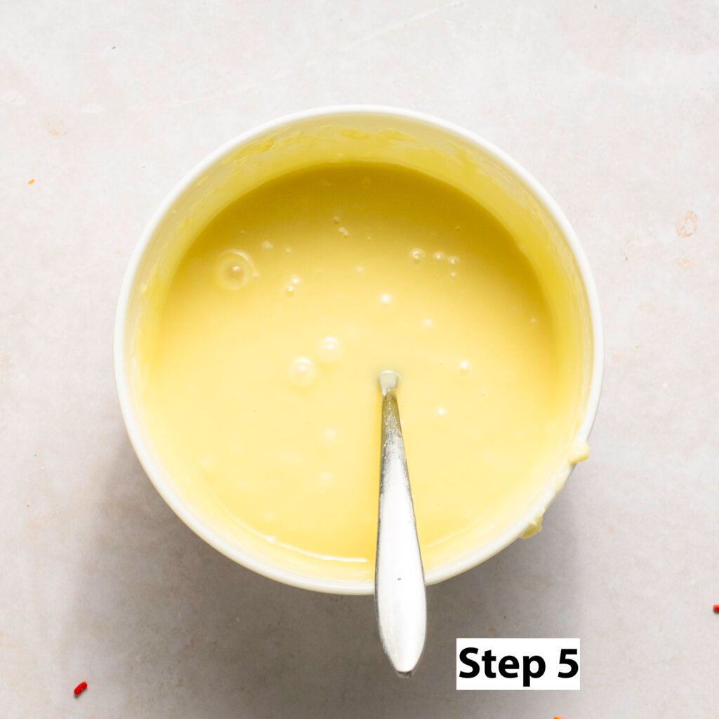 Step 13. Microwave the gelatin for 10-15 seconds until melted to a liquid consistency then allow it cool for 3 minutes. The gelatin should still be slightly warm when added to the heavy cream 2 steps later.
