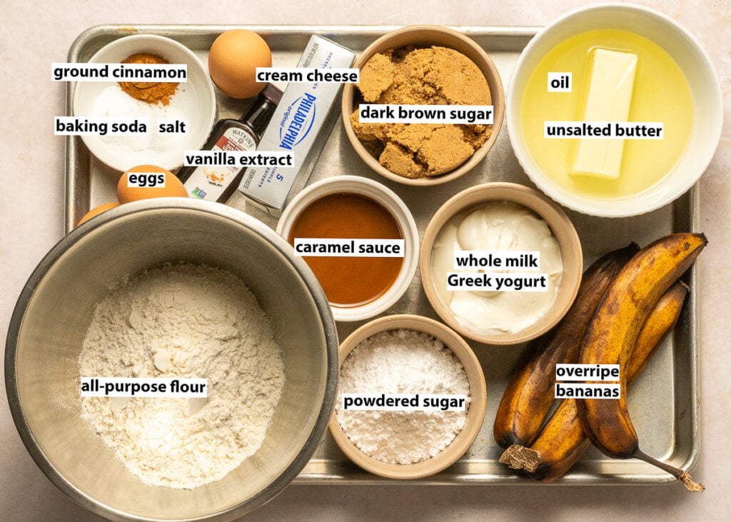 Caramel. Swirled into the cream cheese frosting. Add a sprinkle of flaky sea salt to transform this banana caramel cake into a homemade salted caramel banana cake!