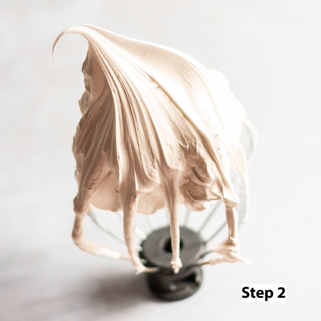Step 1. Start by marking the meringue. Add the egg whites (or meringue powder substitute) & brown sugar to a large mixing bowl over a double boiler. Whisk until the sugar is completely dissolved. To test if ready, tough the mixture to your fingertips - it should be sticky but smooth. If it feels gritty return to the double boiler until smooth.