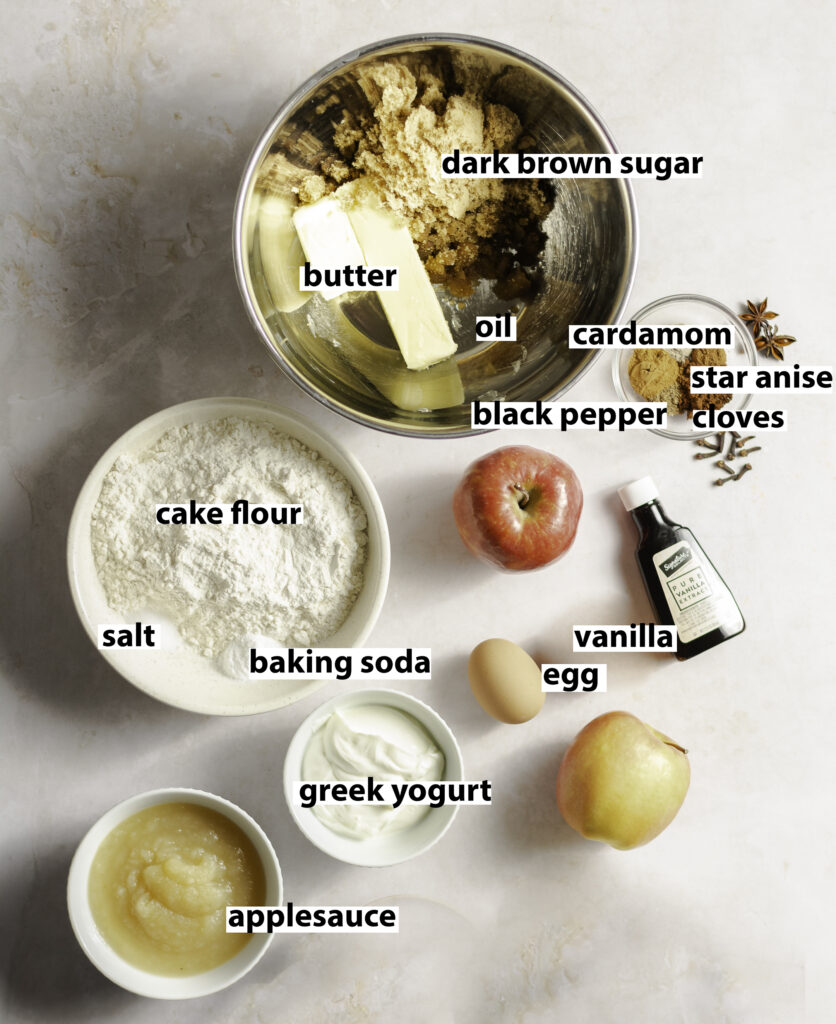 - Add the applesauce, greek yogurt and cake flour mixture to the mixing bowl and mix on the lowest speed until completely incorporated.
