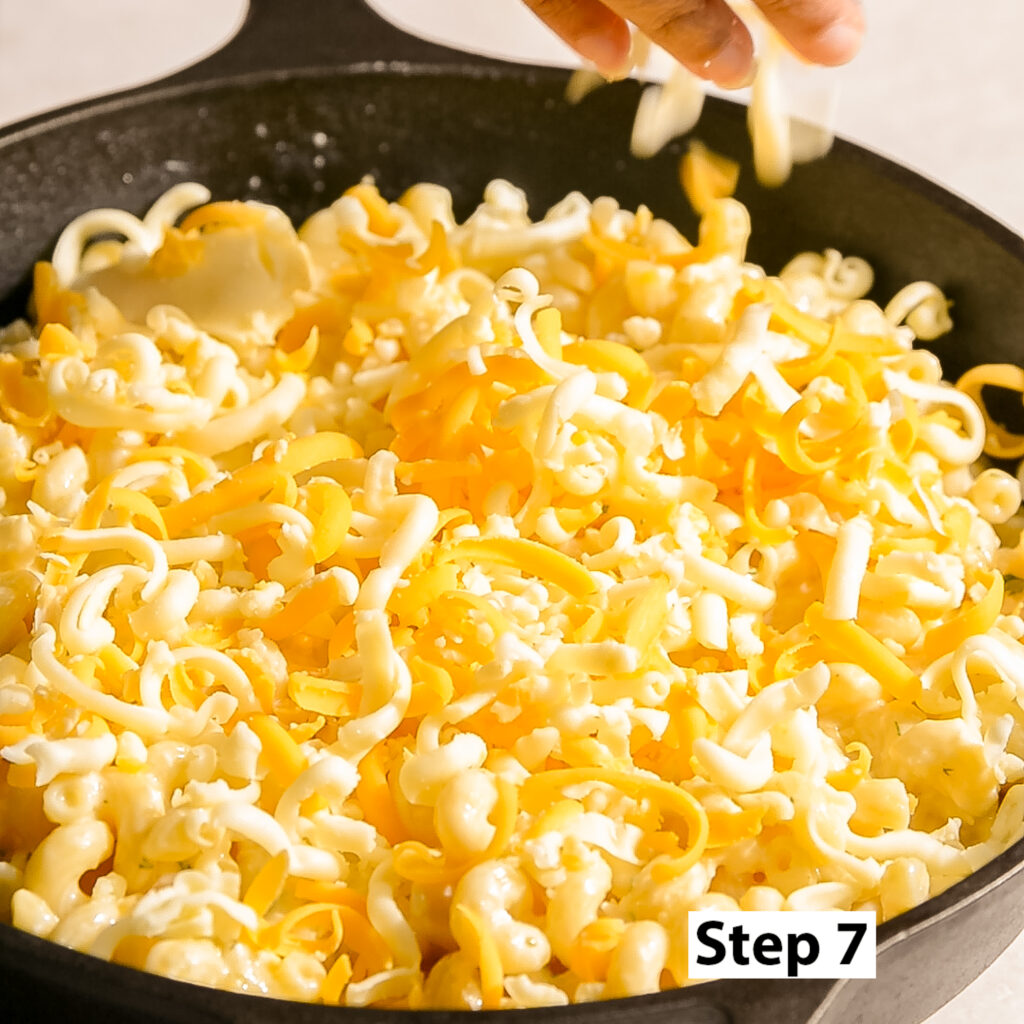 - Add a third of the white cheddar/fontina mixture to the evaporated milk and stir until the cheese has completely melted. Add another third of the cheese mixture and repeat this step until all the white cheddar/fontina mixture has been added.