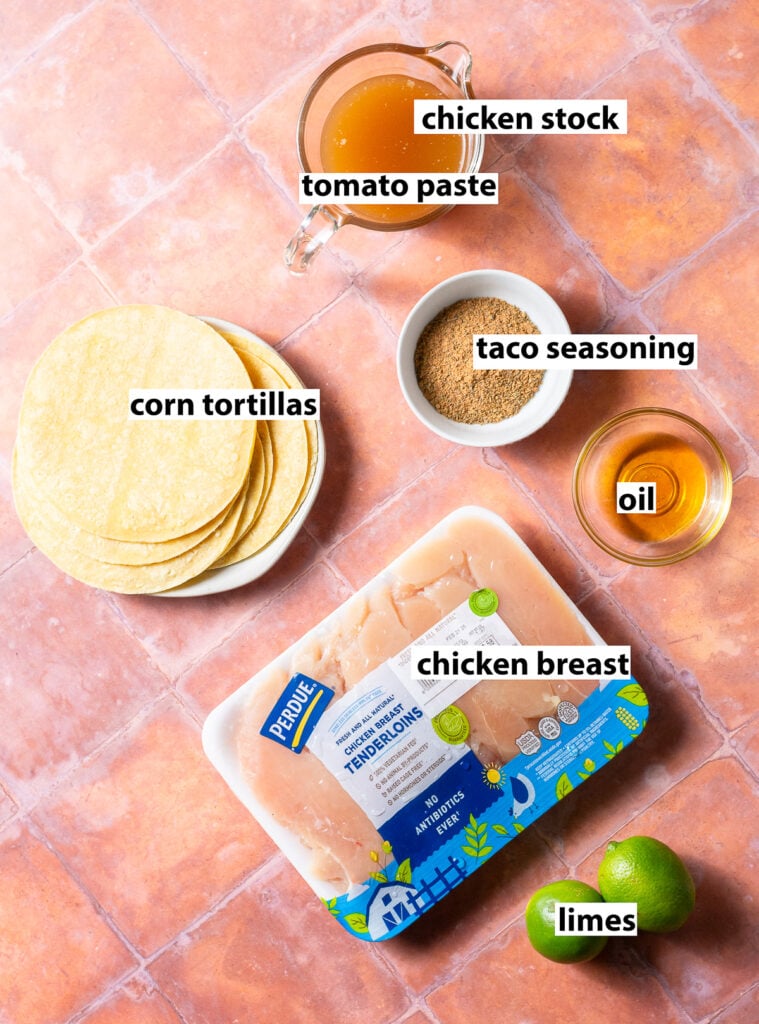 Chicken broth or chicken stock. Use to loosen the fond from the pan after searing the chicken breast and to infuse some more flavor in the tacos!