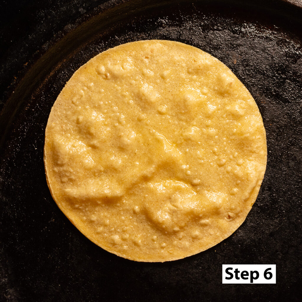 Step 6. Heat up the corn tortillas on the comal, cooking briefly on each side for 20-30 seconds or until bubbles/air pockets start to form.