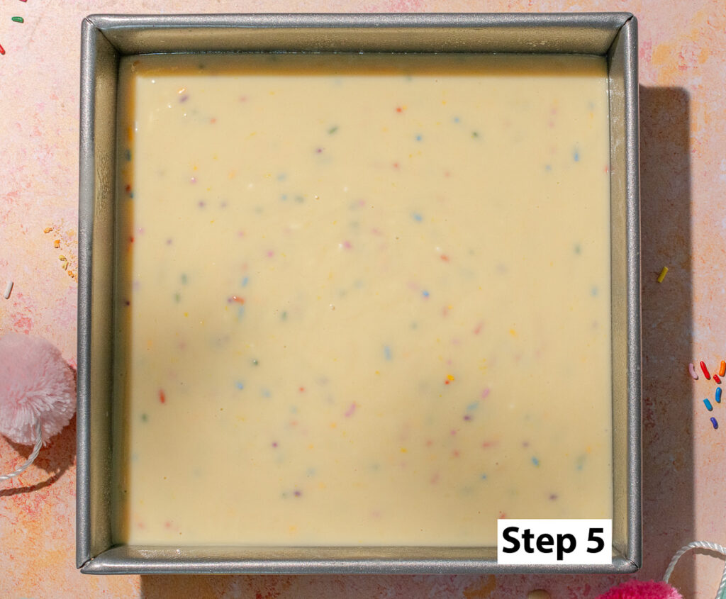 What sprinkles should I use for this recipe? I recommend sprinkle jimmies for this recipe since they do not bleed into the batter readily compared to rainbow nonpareils and dissolve into the batter more readily compared quins which can leave behind chewy texture pockets.