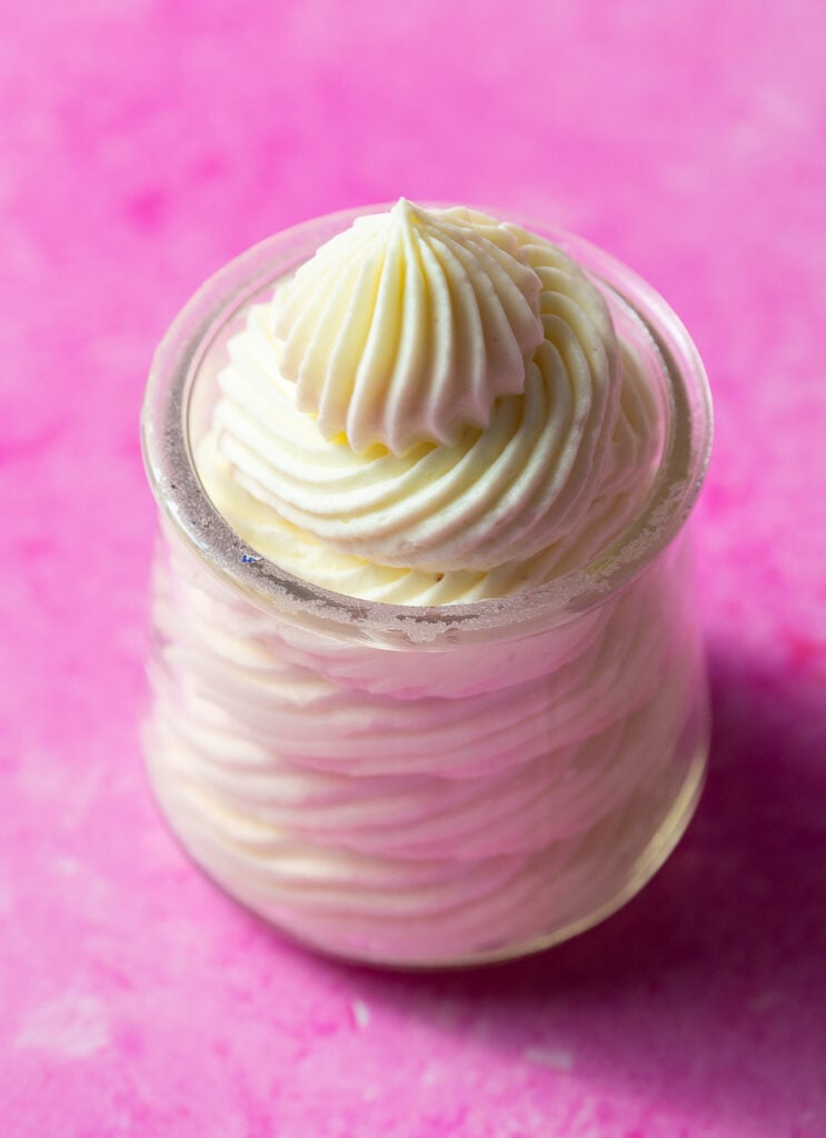 Yes! Mascarpone whipped cream is a stabilized whipped cream. The high-fat Italian cream cheese prevents the whipped cream from loosing its shape so you can pipe it in any desired shapes with your favorite piping tips. This whipped cream is also stable enough to fill, stack and cover cakes.