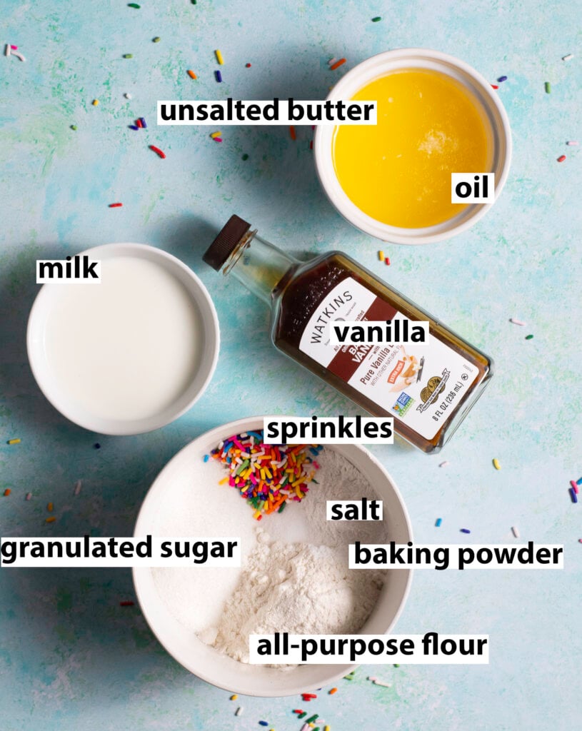 ingredients for the funfetti mug cake