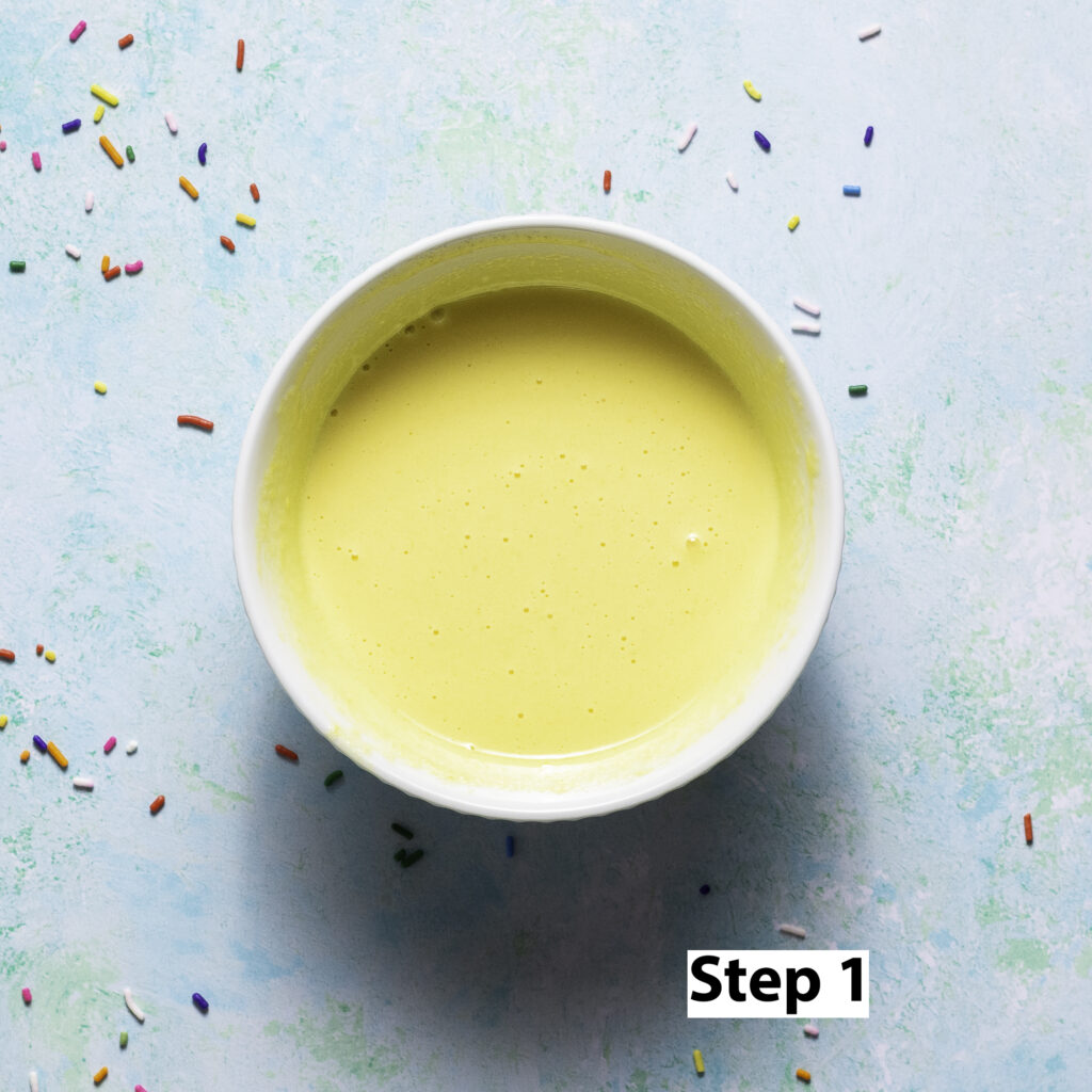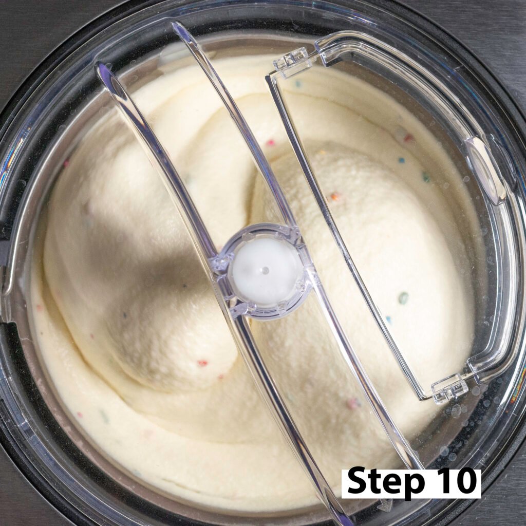 - Chill in the refrigerator for a minimum of 6 hours or up to 3 days before churning. Make your funfetti "mug" cake during this time.