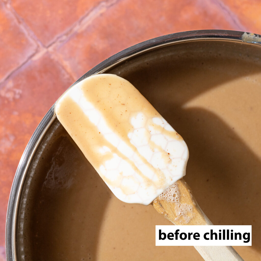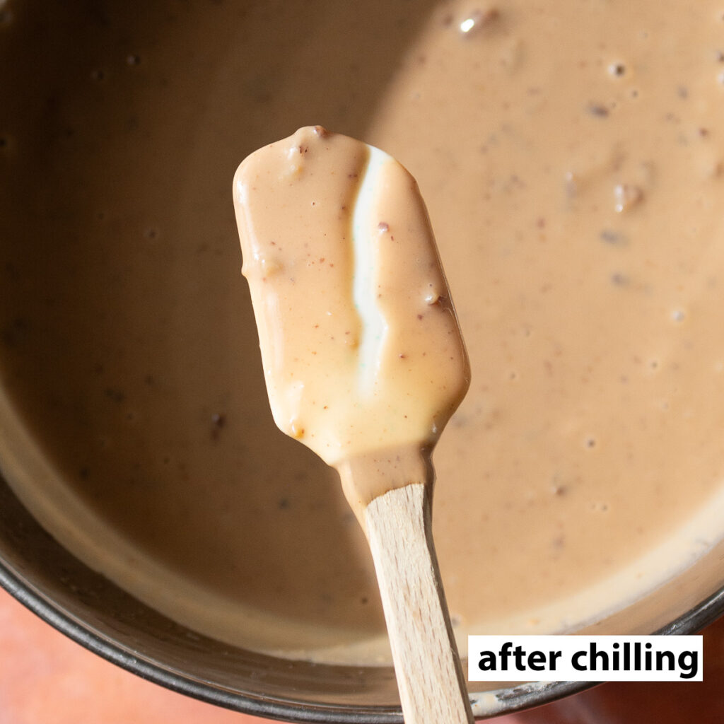 Step 9. Transfer the custard to a heat-resistant bowl and reincorporate the strained pecans from earlier. Cover with plastic wrap or a lid and allow to chill in the refrigerator for at least 4 hours. If using a canister-style ice cream maker, I recommend chilling for at least 6 hours or preferably overnight.
