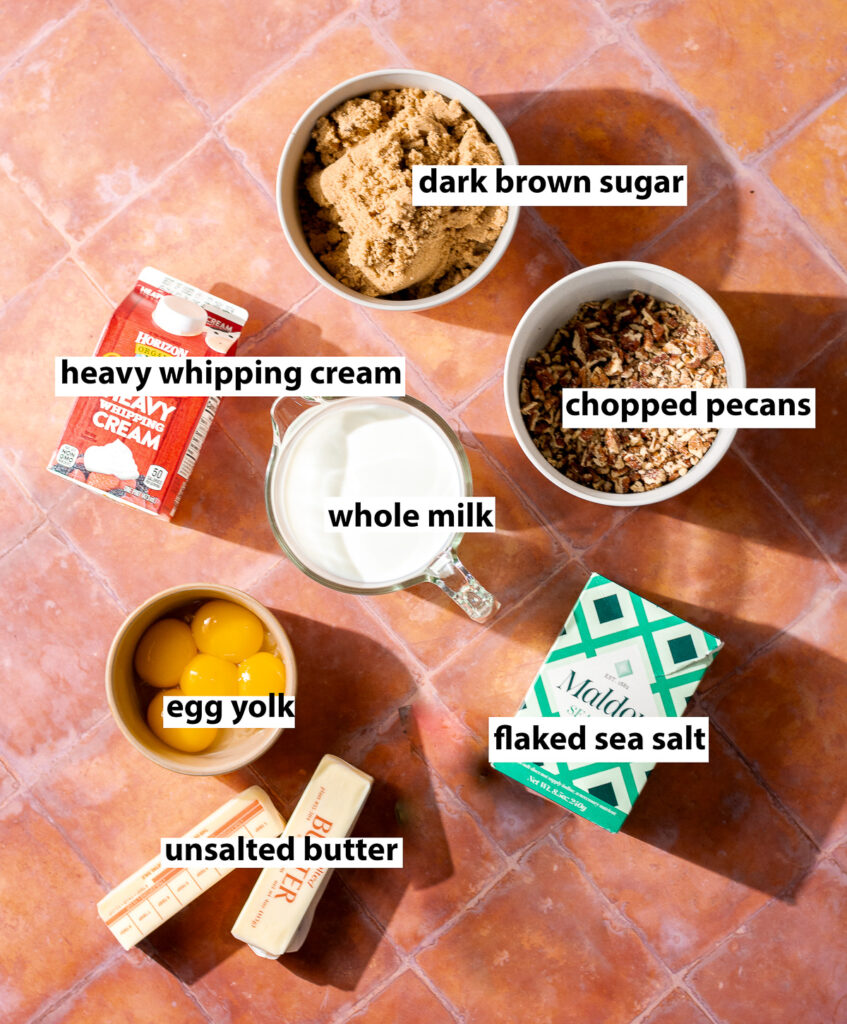 Heavy cream. Contributes butterfat that gives this ice cream richness and helps to bring forward the nutty flavor of the pecans