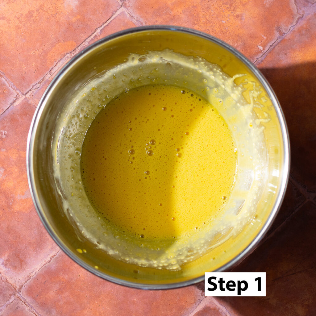 Step 1. Whisk egg yolks in a small bowl until the yellow pales (this should only take 1-2 minutes). Set aside.