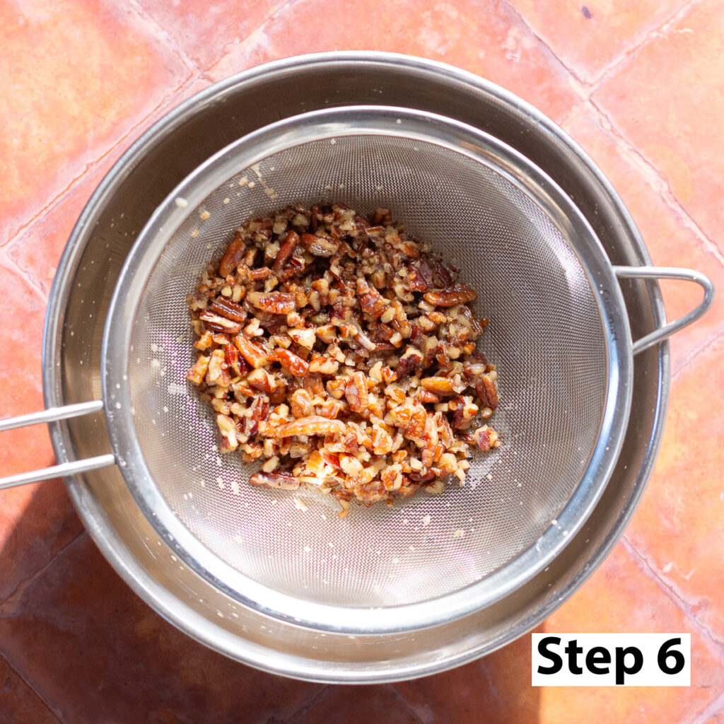 - Strain the milk mixture, saving the strained pecans to reincorporate later.