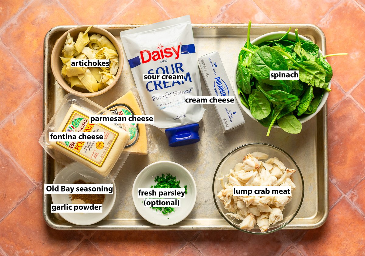 🥣 Main Ingredients: lump crab meat, spinach, artichokes, cream cheese, parmesan, fontina cheese, Old Bay seasoning