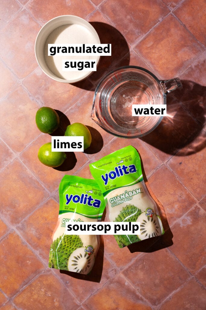 Soursop pulp. The star of the show! Both fresh fruit or frozen will work.