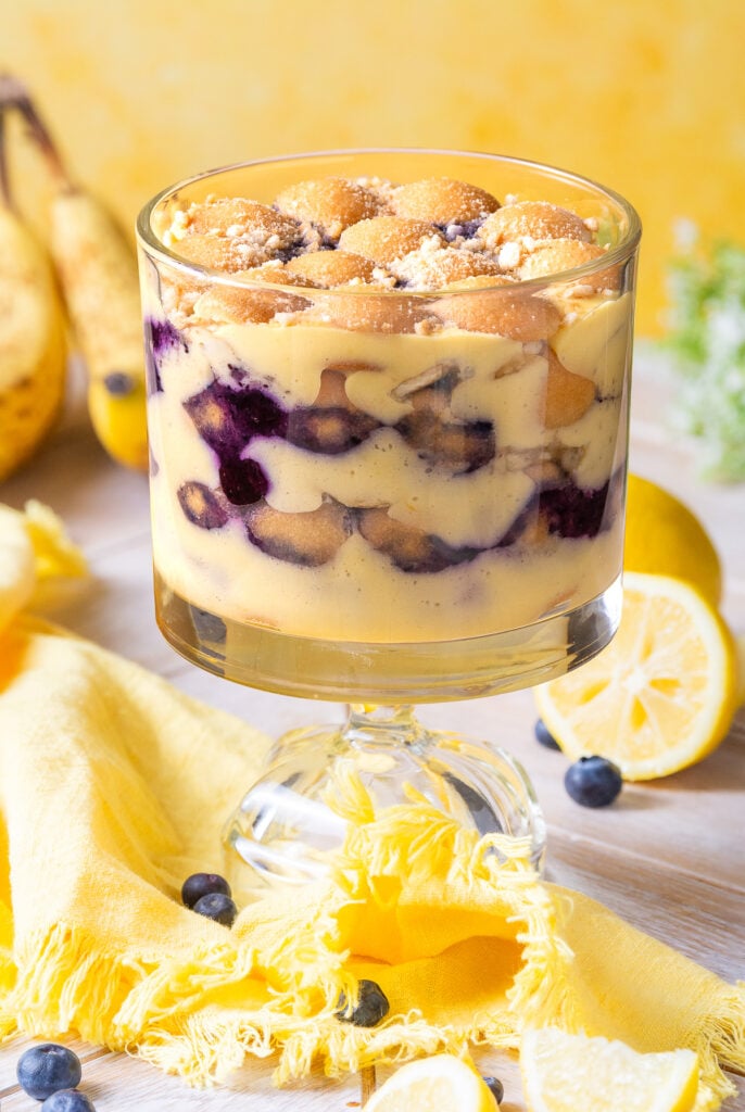 This lemon-blueberry banana pudding is spring sunshine in a dish! It's not your average banana pudding. We’re taking the classic southern dessert, giving it a citrusy twist, and layering in a jammy blueberry compote for the ultimate flavor upgrade. A silky lemon custard, ripe bananas, soft vanilla wafers, and pockets of sweet-tart blueberry goodness all melded together into one ridiculously delicious dessert! And the best part? No artificial flavors—just real lemons, real fruit, and real good flavor.