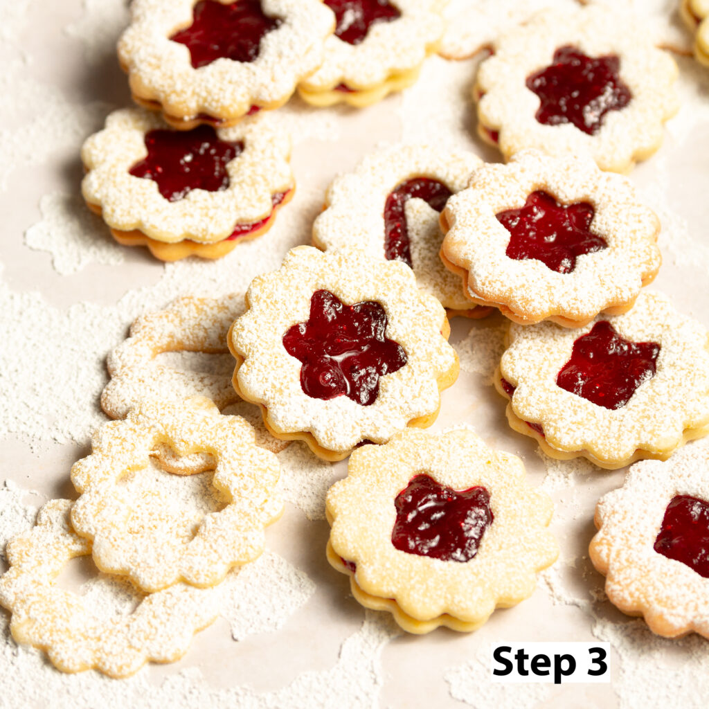 assembling the orange-cranberry Linzer cookies