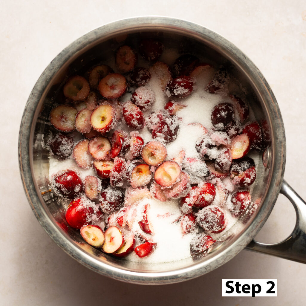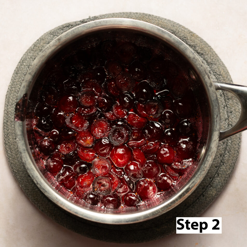 Step 2. Add the sliced/mashed cranberries to a saucepan along with the granulated sugar and cornstarch. Reduce over low-medium heat until cranberries are softened and the liquid has a syrupy consistency. Remove from heat.