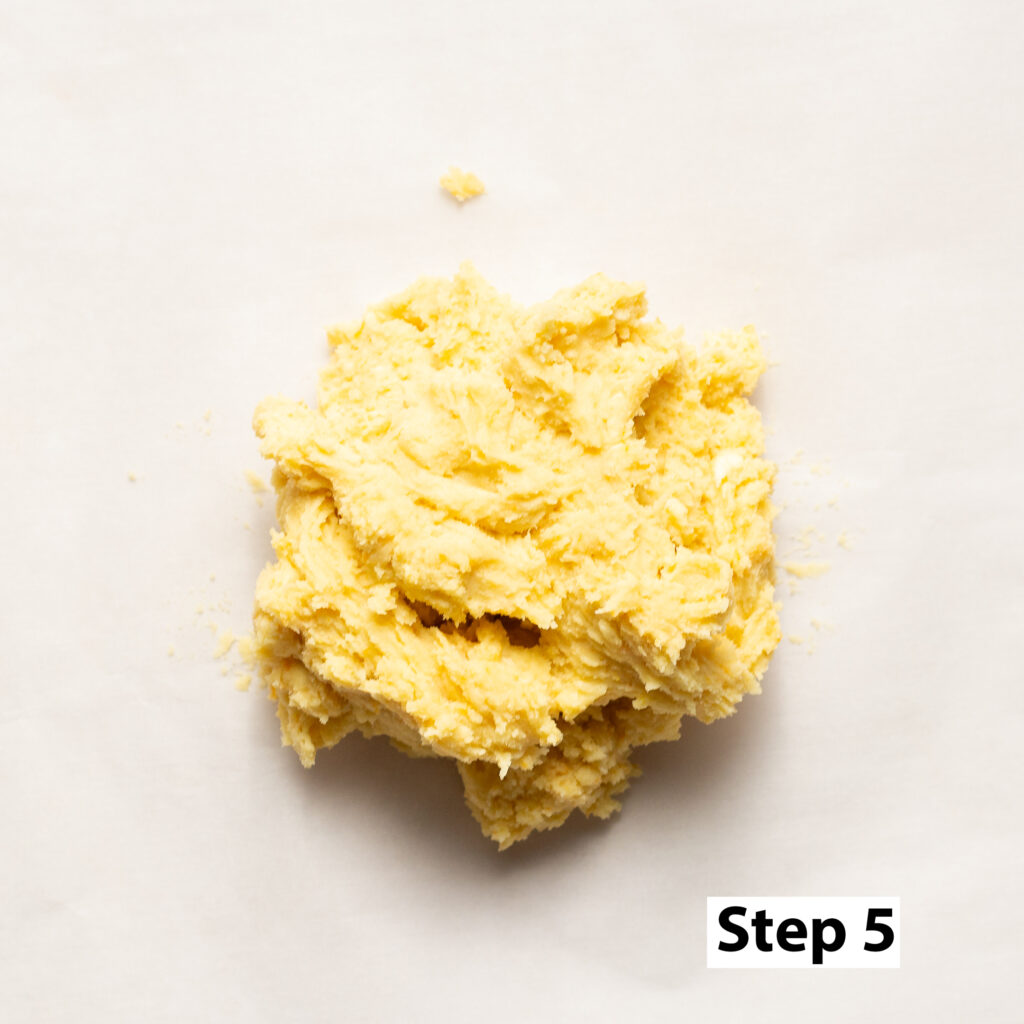 Step 3. Add the butter and beat again until relatively smooth (about 2-3 minutes). A few tiny chunks are fine as they will resolve once the dough is rolled out. If you are using a stand mixer, stop halfway to scrape down the sides/bottom of your bowl as the butter tends to stick to the sides at first.