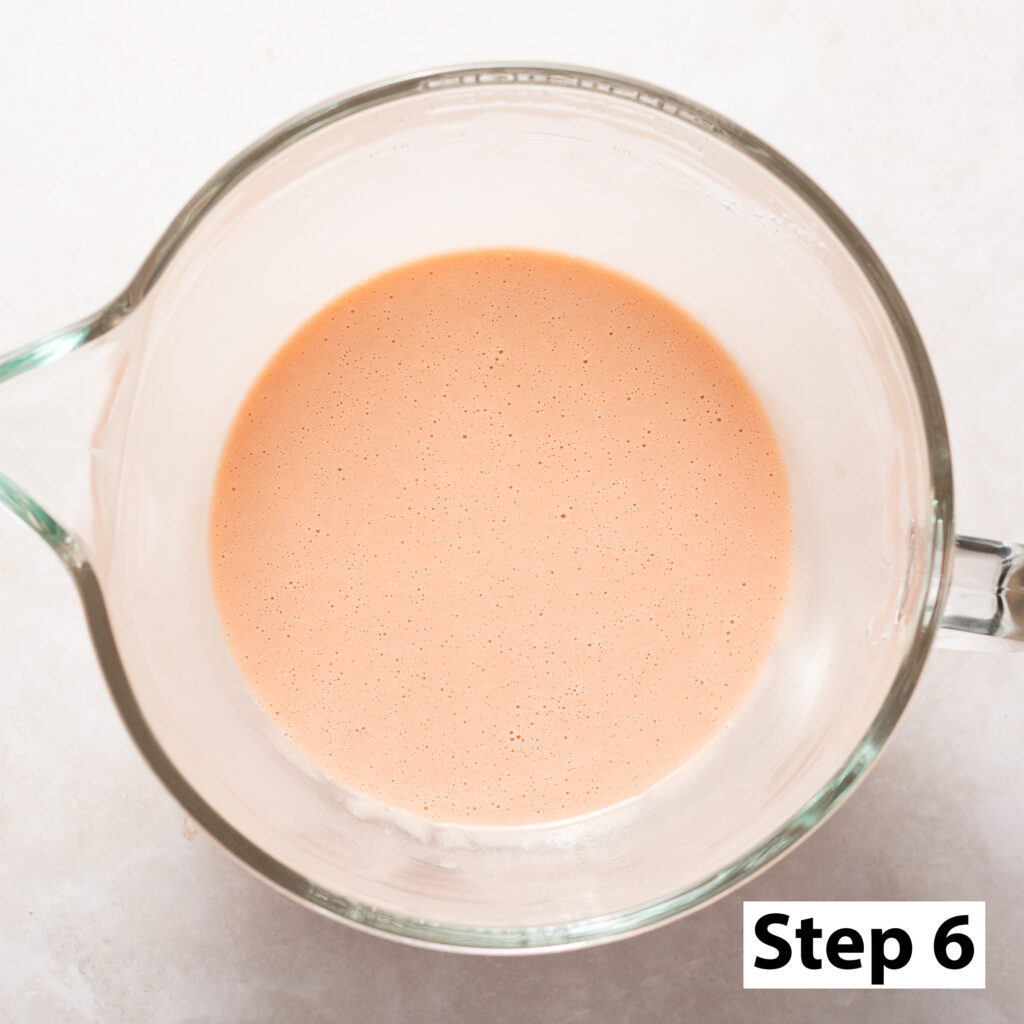 - Add the eggs, pink champagne, sour cream & red/pink food coloring (if using) in a bowl and whisk til smooth. Set aside.