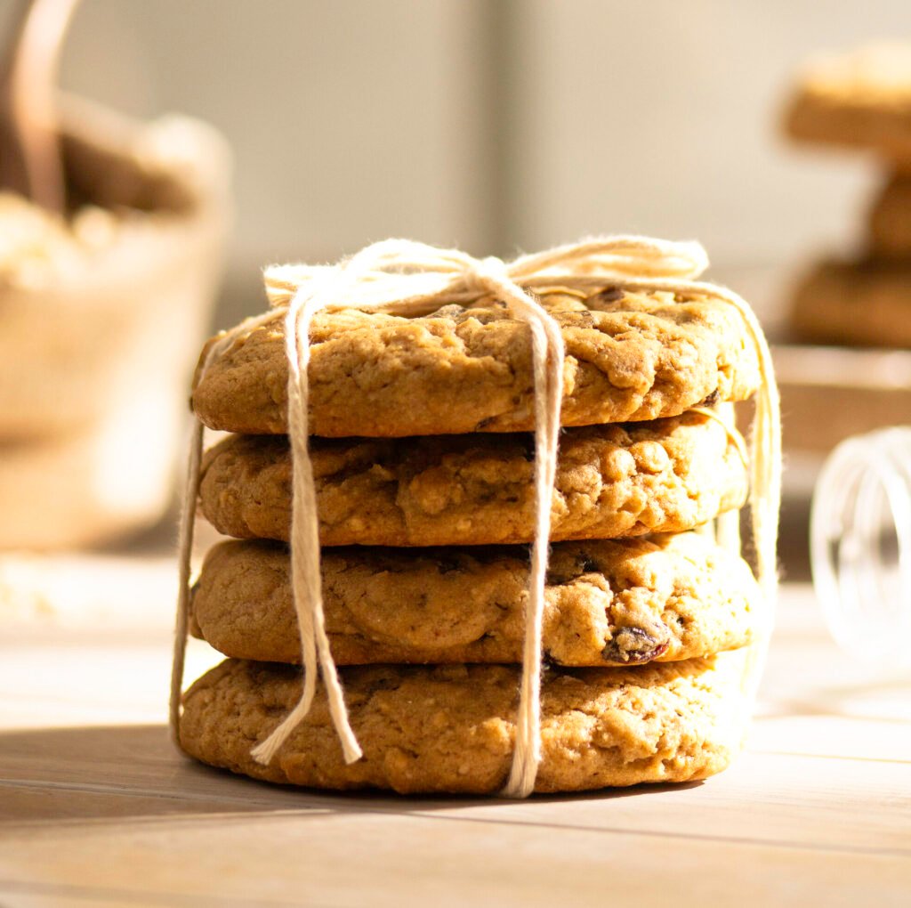 A classic oatmeal-raisin cookie spiced with cinnamon and nutmeg and baked into a soft, bakery-style cookie with a gooey center.