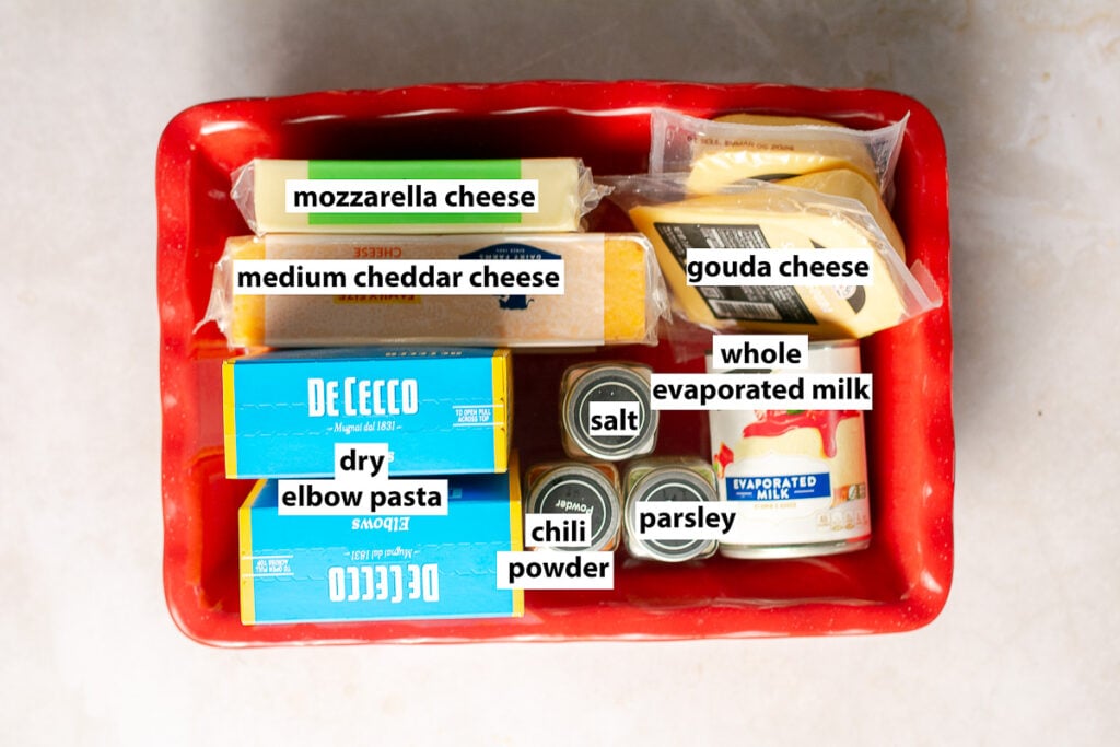 Young gouda. A soft cheese with a mild, nutty flavor. Young gouda is soft and melts incredibly while aged gouda is much firmer and doesn't melt as smoothly. You can opt for smoked gouda for an extra layer of flavor but to avoid an overpowering flavor, I recommend only substituting half of the total 16 ounces called for with smoked gouda.! Colby jack is a good substitute.